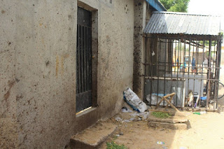 A picture taken on April 7, 2019 shows the wall of a house affected by a bomb blast in Maiduguri, northeastern Nigeria, following a double suicide attack that killed at least three people and wounded more than 30. – At least three people were killed and more than 30 wounded in a double suicide attack in Maiduguri, the capital of northeastern Nigeria, ravaged by the insurgency of the jihadist group Boko Haram, according to security sources and residents on April 7, 2019. Two suicide bombers set off their explosives on late April 6 in the middle of the crowd in the Muna Dalti district, on the outskirts of the city.